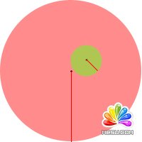 那么,起点圆的半径有什么用呢?——本来正常的径向渐变的中心(姑且称之为“变心”…吧)只是一个点,不应该是一个圆的。其实我们没错,这个起点圆就相当于一个圆点而已,只是可能比较大。