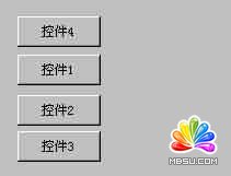 靠上对齐后,因为控件1、控件2和控件4会重叠,系统自动将这3个控件的边相邻排列