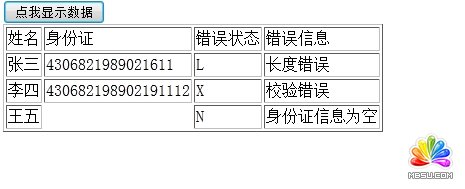 ErrorCondition r2 = new ErrorCondition("李四", "430682198902191112","X", "校验错误");