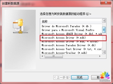 2、在“系统DSN”选项卡中,单击“添加”按钮,打开创建数据源对话框,选择Access数据库的驱动程序“Microsoft Access Driver(*.mdb)”如图所示: