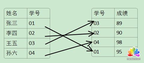 b,非聚集索引:指存储的数据顺序一般和表的物理数据的存储结构不同。通过下表我们可以分析出:(其中在学号上建立非聚集索引)