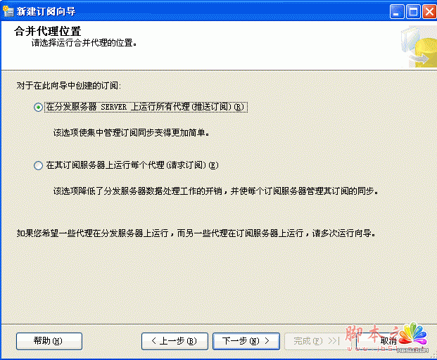 (3)选择运行代理的位置,根据需求选择是“推送”还是“请求”!
