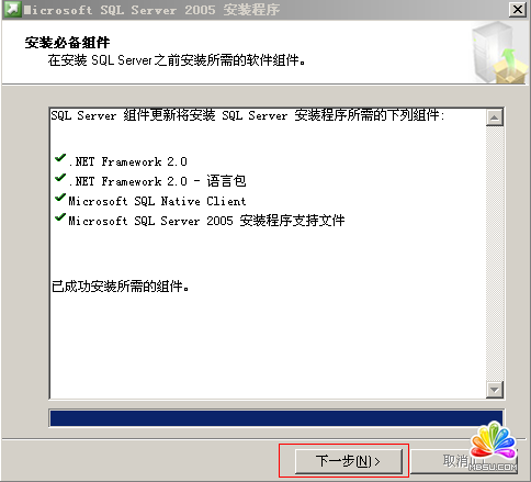 第五步:提示已成功安装所需的组件,点“下一步”,扫描计算机配置。