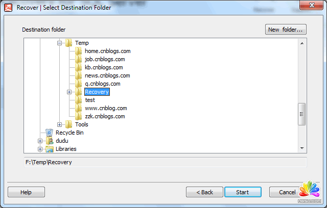 5. Next 并选择目标文件夹(Destination folder),用于存放恢复过程中生成的SQL语句与bat文件。