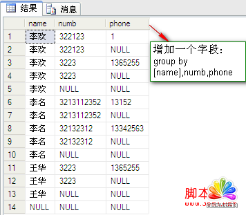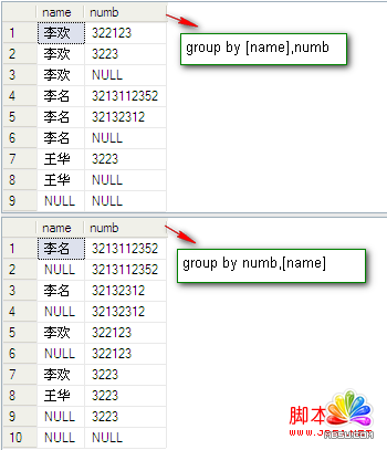 select [name],numb,sum(fenshu) from dbo.PeopleInfo group by [name],numb with cube --3,用with cube。这三种情况的比较