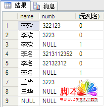 select [name],numb,sum(fenshu) from dbo.PeopleInfo group by [name],numb --2,用group by 查询所有数据;
