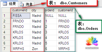select * from dbo.Customers as C left join dbo.Orders as O on C.customerid = O.customerid
