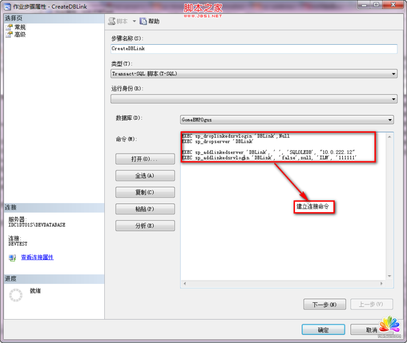 介绍完建立连接的方式,下面正式介绍SQL JOB的开发。直接用步骤介绍了。