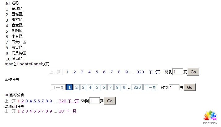 1.ajax之UpdatePanel分页则把控件放到UpdatePanel里面即可(不能启用url重写和url参数分页,即跳转页面)