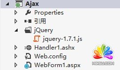 其中.ashx文件是一般处理程序,暂时不用知道它是干嘛用的,后面你就知道了。jquery-1.7.1.js可以在。
