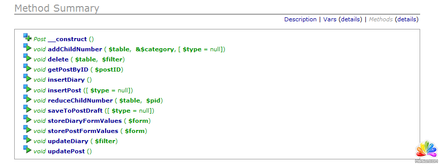 下面配合 post.php 控制器,我们就可以开始我们数据的流程了(我的控制器还不是一个类,所以无法生成API文档。因为这还不是真正地MVC架构。)所以在MVC之前,这个也能更利于的理解MVC到底是神马东东,以及你自己如何去应用,写出自己的MVC。