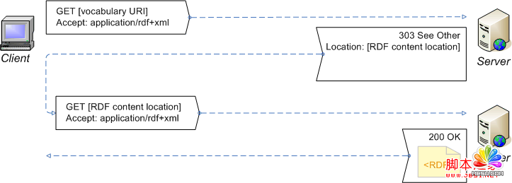 •但对于语义浏览器,其HTTP请求头是:application/rdf+xml类型,故服务器进行303重定向,得到相应RDF文件。