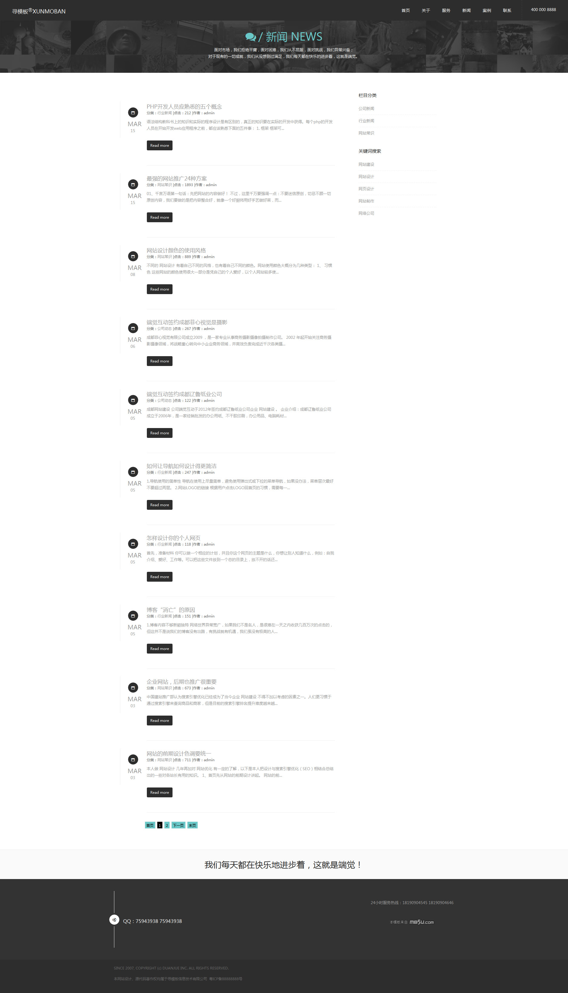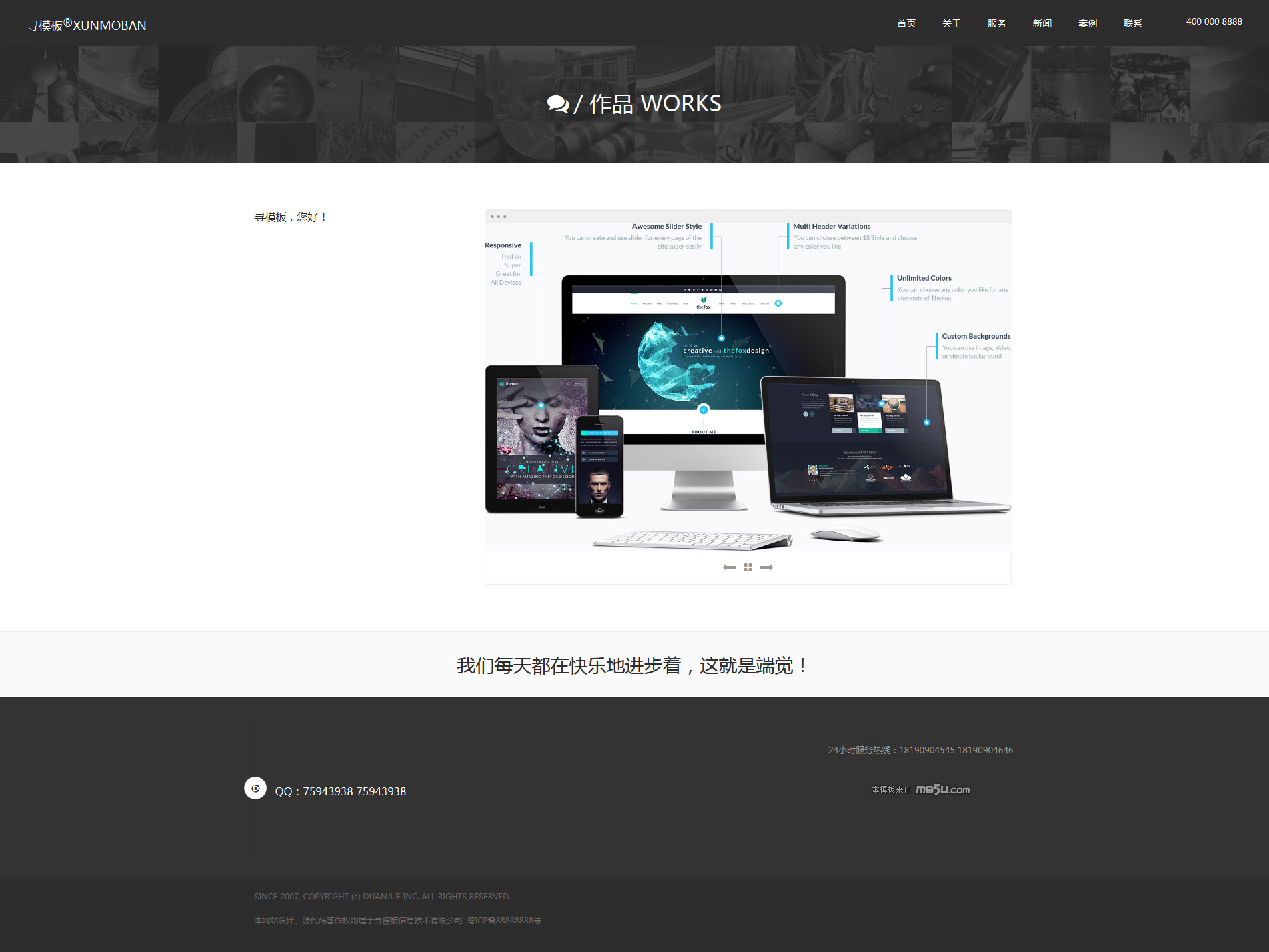 设计包含的页面不是很多,例如关于我们,联系我们等页面都是直接使用的首页显示。