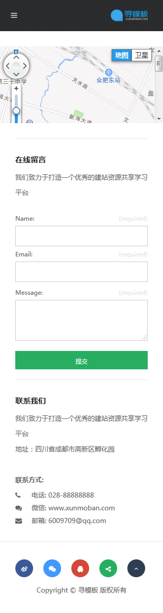 联系我们页面的地图请打开文件夹m/xunmoban下面的map.html文件进行修改设置