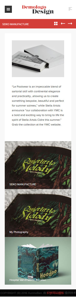 此套模板适用于广告包装艺术设计类的公司企业等,采用响应式布局设计能自适应不同的移动终端,价格:元 点击:18HTML5高端广告摄影展示类响应