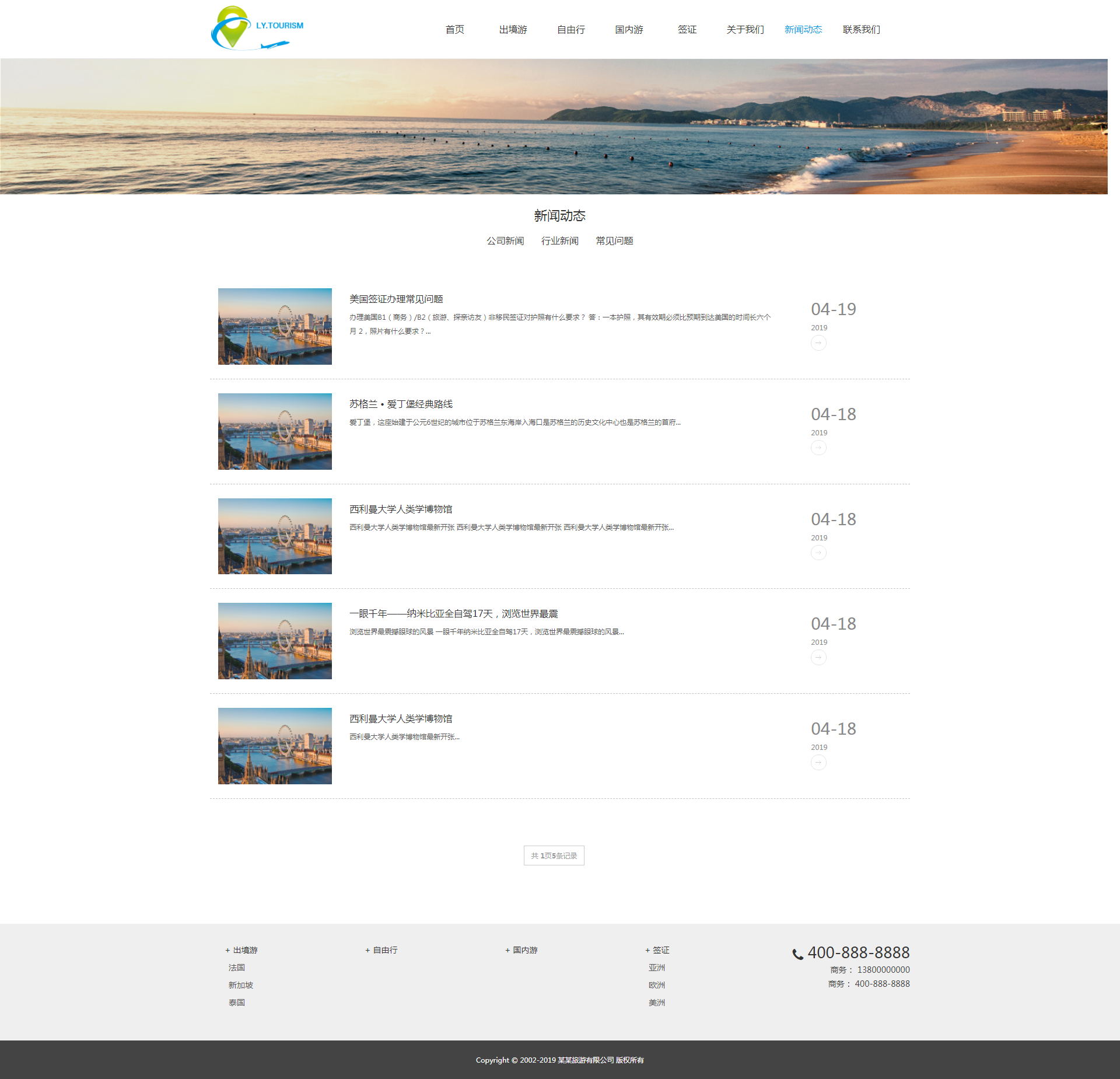 模板介绍:首页模板、图片列表、新闻列表、签证、单页、联系我们、在线留言、文章页。