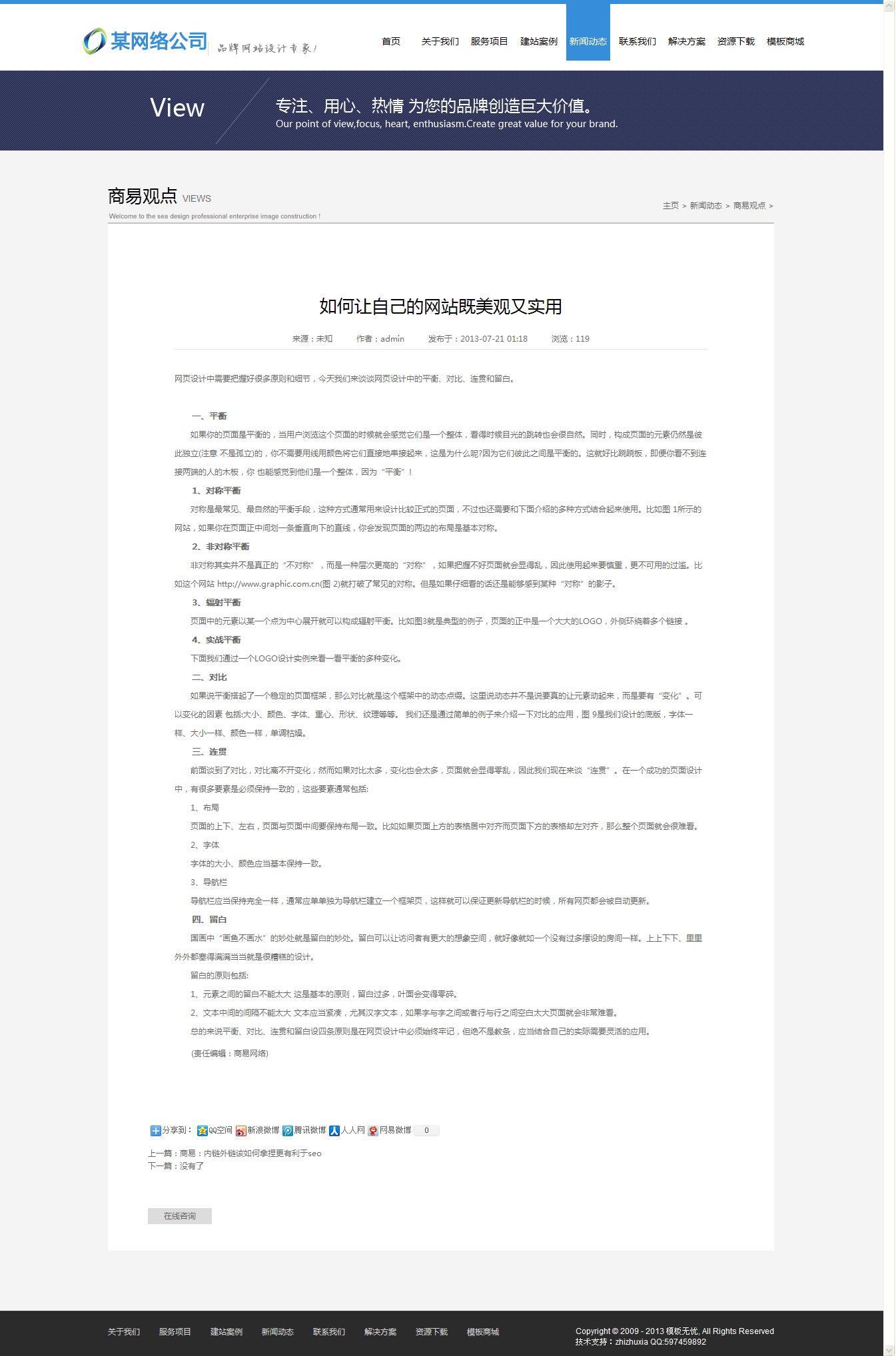 此款源码不可多得的网络营销,网站建设,广告设计类型工作室或者公司整站源码,网站源码非常简介大气,图片展示效果非常突出,由织梦dede内核搭建,已经设置好栏目,各种JS特效都已实现,调用好数据,方便您使用。包括关于我们,联系我们,建站案例,服务项目,资源下载,新闻中心,模板商城等栏目