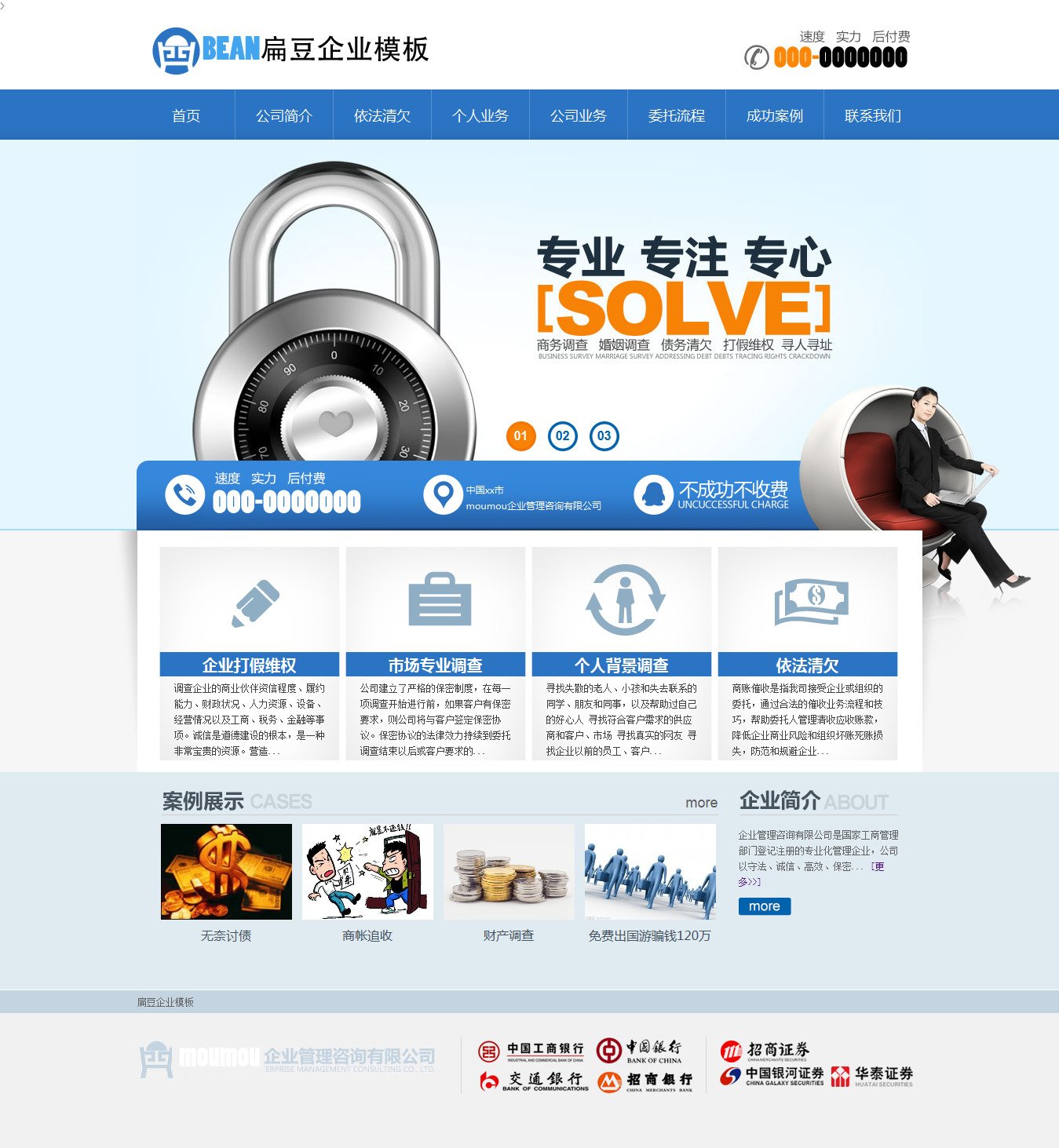蓝色织梦dede融资理财律师贷款投资企业通用模板