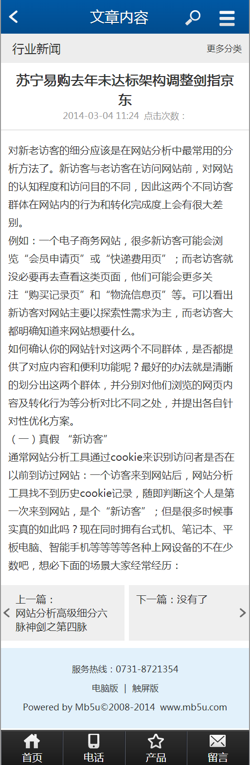 织梦内核开发的公司企业通用手机网站模板,HTML5+CSS实现的多种效果,已经设置好栏目,各种JS特效都已实现,调用好数据,方便您使用。如果你已经有PC端网站,只需要安装此套模板,设置访问地址为二级域名,把下面的js代码加入到您PC端网站中,当用手机访问你的网站时,自动调整到手机版。此版本是独立后台,只需要更换里面的资料和栏目即可。
