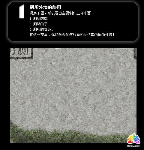 在这一节里,你将学会如何绘画如此仿真的厕所外墙!