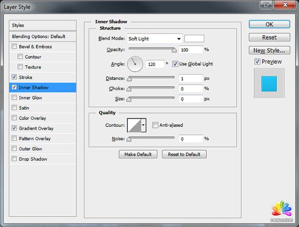 22、新建一个图层,用矩形选框工具在底部的框中拉一个矩形选区任意填色后添加下图所示的图层样式,参数及效果如下图。