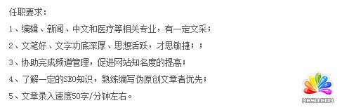 以上三点,我想完全可以诠释网站编辑这个岗位了,我们来看一个公司对于网站编辑的岗位要求: