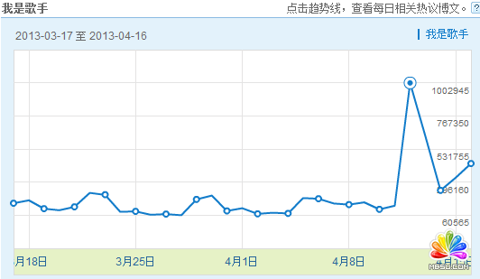 4月12日,湖南卫视的综艺节目《我是歌手》总决赛以全国网、中心城市网收视数据双双揽获超高收视、名列全国同时段第一的优异成绩完美收官。除了传统的收视率,此节目在社交网络和视频网站上的数据也同样惊人。