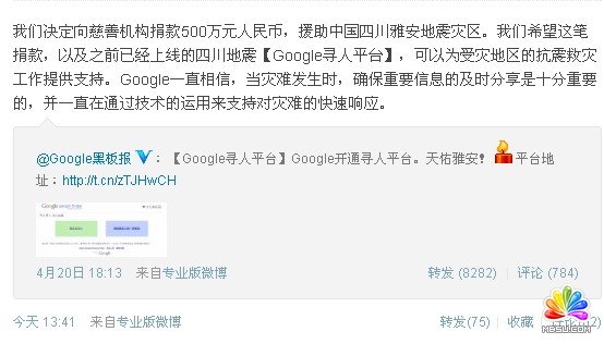 谷歌宣布捐款500万援助四川雅安地震灾区_SEO优化教程