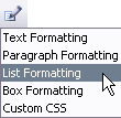 "List Formatting" menu item. | ListFormatting | btnListFormatting | true | Yes | Yes |
