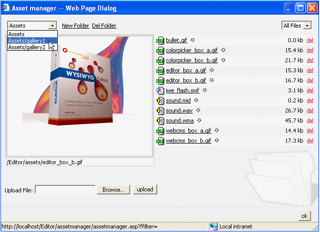 Using the Asset Manager add-on, you can browse and manage your web assets