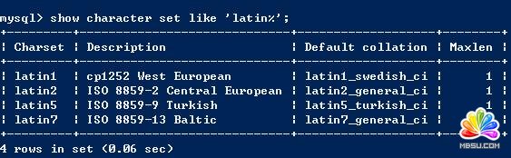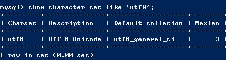 注意:Maxlen列显示用于存储一个字符的最大的字节数目。