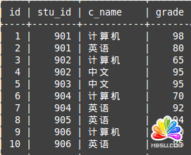 mysql> select c_name,max(grade) from score where c_name='英语';