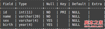 mysql> insert into person(id,name,sex,birth) values(6,'王芳','女',1992);