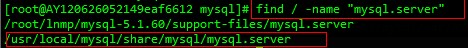 先查看查找mysql.server,使用:find / -name "mysql.server"