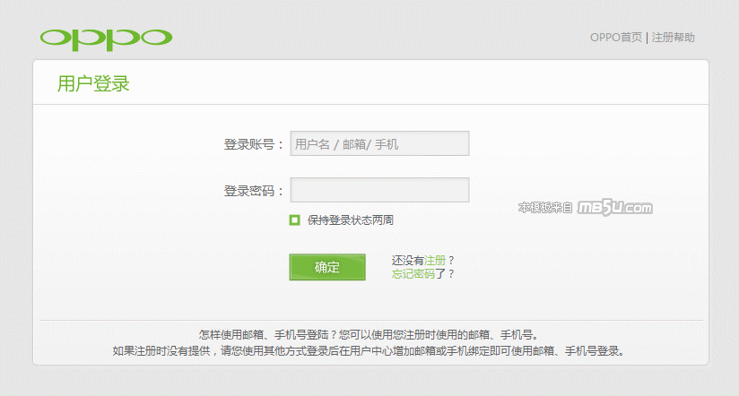 OPPO官网的注册及登录页面,有朋友来提交,模板无忧在第一时间把网页模板整理了出来,提供给无忧的各位朋友们下载.