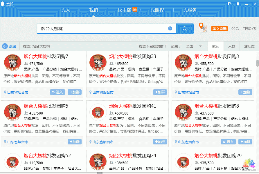 qq群的群标签和介绍充分利用,添加上红薏米茶相关的词,排名就不会错,最重要的是要找一些人活跃群,群的活跃度关系到群的排名!
