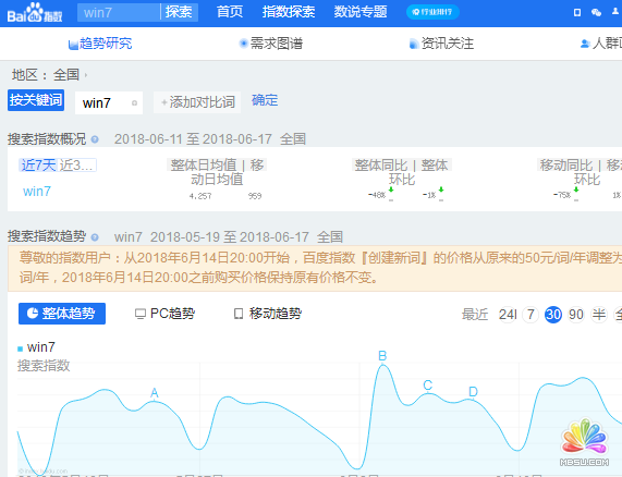 看看 win7 这个词的百度指数。