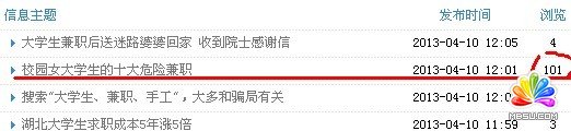 我在想大学生外兼职最担心的问题是什么,我的网站在初期如何展开推广这类的话题,大学生在外兼职最担心的无非是安全性及酬劳是否平等或者能否及时结算薪资,所以我武汉大学生兼职网的定位是帮助学生成长,互帮互助的原则,指导学生在外兼职如何避免突发事件的发生及后续处理,站在大学生兼职的群体里面去思考问题,我想效果一定或很明显的,昨日我找了一篇关于大学生在外兼职的两篇文章,一篇是《钓鱼网站出“新招” 假冒兼职网瞄准大学生》,一篇是《校园女大学生的十大危险兼职》,这两个话题都是与大学生在外兼职息息相关的,所以在做QQ群营销的同时,点击率是很高的