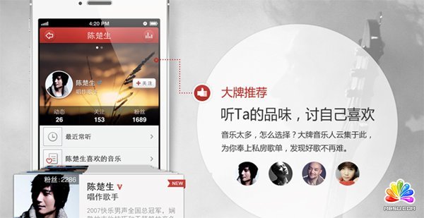 此外,网易云音乐将会有大牌的DJ为用户推荐音乐,DJ包括了歌手、主持人以及知名音乐人。目前获悉,著名歌手孙楠、陈楚生、羽泉、吉杰、李霄云等均入驻了网易云音乐。
