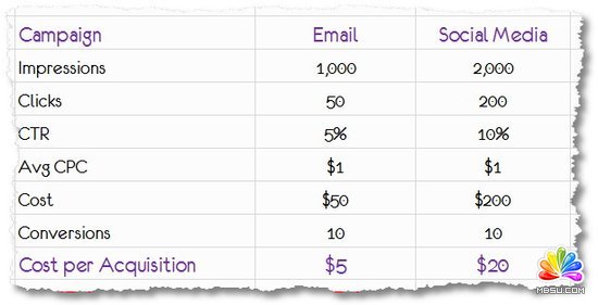 CPA应作为分析报告中的最佳度量之一,其中展示次数(Impressions)、点击数(Clicks)、点击率(CTR)、平均每次点击成本(Avg CPC)、转换(Conversions)等度量数据均可通过Google Analytics、Omniture等网站分析工具获得,但是成本(Cost)需要自行核算。