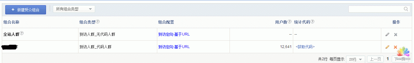 1、使用“受众组合工具”设置“到访人群”,获取相应代码