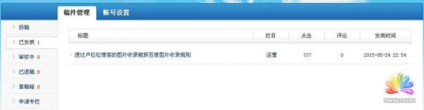 2、投稿后可以明显在审核中看到投稿的记录,但是等到第二天登录后台在已发表或审核中或已退稿都无法找到我所投的稿件,翻看用户中心的站内消息也没有相关消息说明,登录我的邮箱也没看到相关邮件。换句话就是说我所投到站长之家的稿件已经被删除!个人认为既然有已退稿的功能,为什么不采纳的文章不会到已退稿中?或者哪怕是删除了给我们一个站内消息也可以。可惜,什么都没有,一点痕迹都没留下。