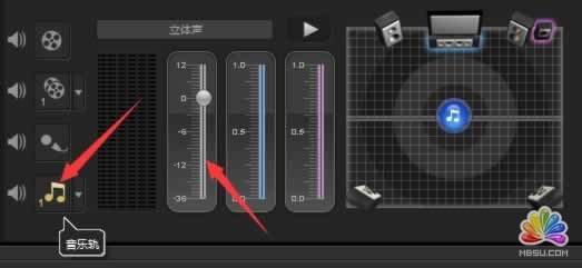 这里就已经选择好了音乐了(轻音乐最好),然后我们来调控下音乐的声音大小,不要让音乐干扰到原有电视剧内的视频声音,选择上面的混音器音乐符号那个。