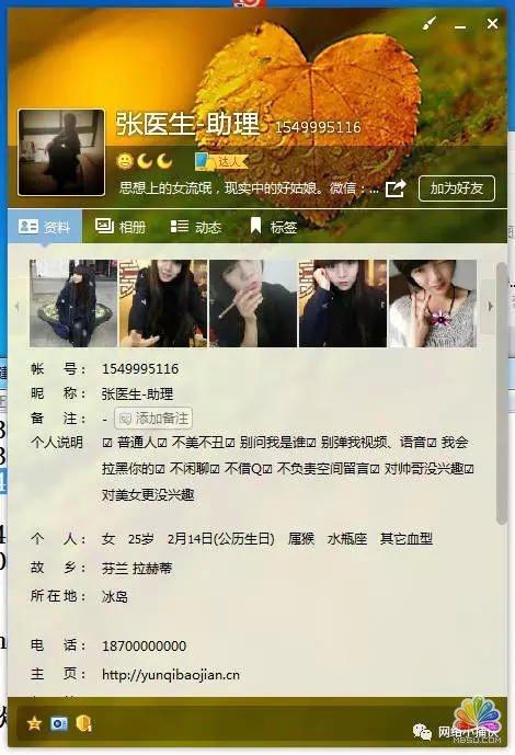 通过这个qq的QQ群历史备注查出来 名叫申燕鹏 完全一个妹子的名字啊 目测这个是生活号 进空间看看