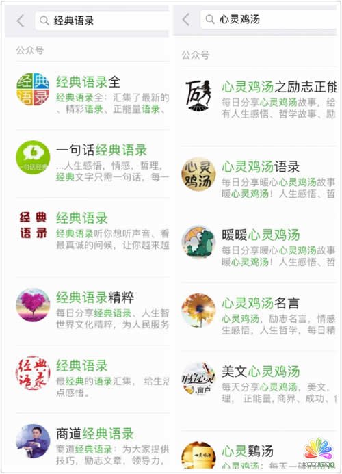直接在公众号搜索关键词。关注一系列类型的公众号: 1、素材每天更新 2、便捷 3、领域广。比如我们写美文、心灵鸡汤可以搜:心灵鸡汤、美文、暖心话、励志、哲理、经典语录、正能量话语、人生感悟、生活感悟等。