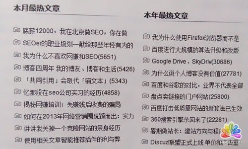 每个CMS 系统都有热门文章点击插件,我们可以把大多数文章按月、按年、按栏目、按评论量统一列出来,如下图部分截图举例: