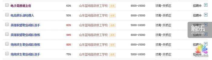 蓝翔官网招聘链接跳转某招聘网站上的有关电竞的职位