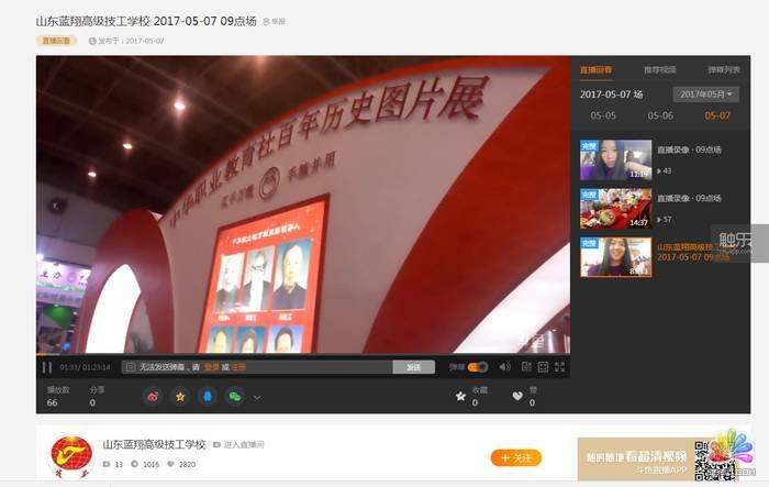 斗鱼上的山东蓝翔高级技工学校直播回看