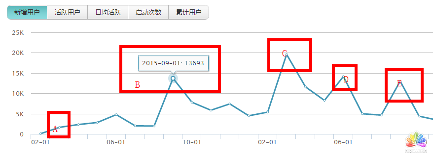 B节点:这个节点主要是A产品联合一家门户平台策划组织了“讲故事大赛”系列活动,通过线上报名、线下海选-初赛-决赛的形式,配合用户成长体系和激励体系,造成DAU第二个爆点,这个具体等老付探讨活动运营再展开。