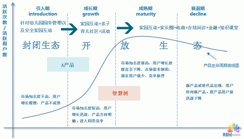 如果产品处在成长期,即你的用户除了引入期用户之外还要做适龄孩子家长及非合作园所机构,前提是你的产品迭代速度就得跟上,即在不同的产品生命周期需要通过能充分满足需求的迭代产品提供给你变化的用户。